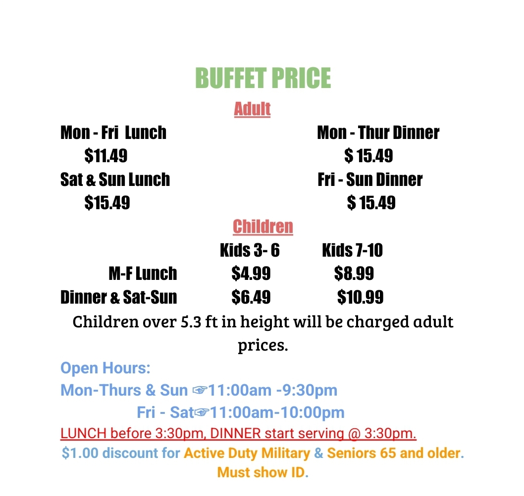 Chow Time Grill & Buffet Menu